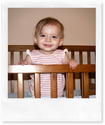 That’s my girl. And her bunny. Her constant friend. She was so happy today. So into everything! I feel like my title has been changed from “Mommy” to “mess-picker-upper”. She took all the cloth diapers off the changing table, opened my nightstand drawer and threw everything out, played with the forks, leaving a trail across the kitchen floor. She spread piano books all over the living room, along with her Cheerios. I turned my back for a second and she crawled across to her bedroom, through my bedroom, out the hallway, and into the bathroom. There she opened the cupboard and got out the Lysol wipes. Guess it’s time to install those baby locks!