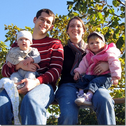 {Elaine was still sleeping, so Nolan was the center of attention. Jim, Nolan, Ben, and Sissy}