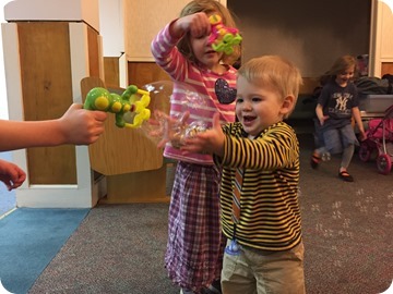 Bubbles! I brought home some bubble guns for the twins, and it was Henry’s first real experience with bubbles! He was hooked!